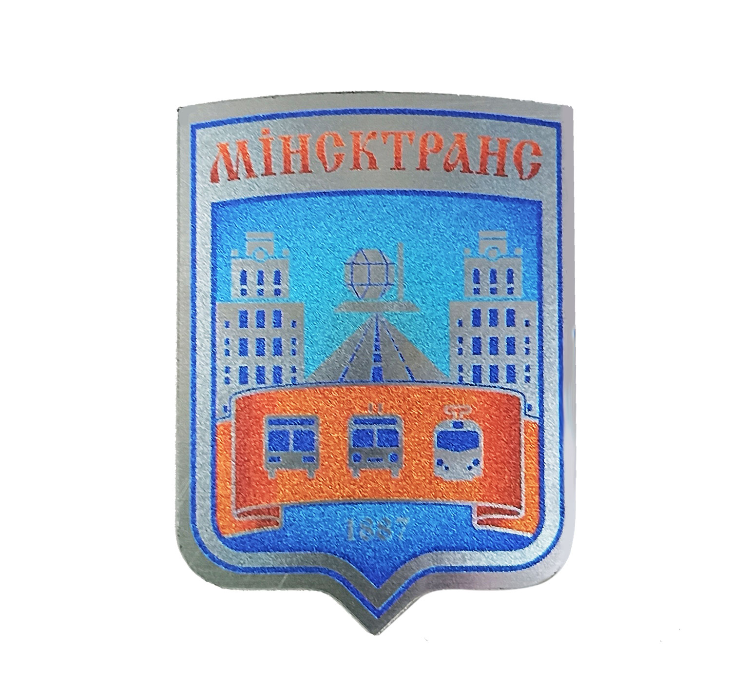 Бейдж из металлизированного ПВХ с гравировкой логотипа.