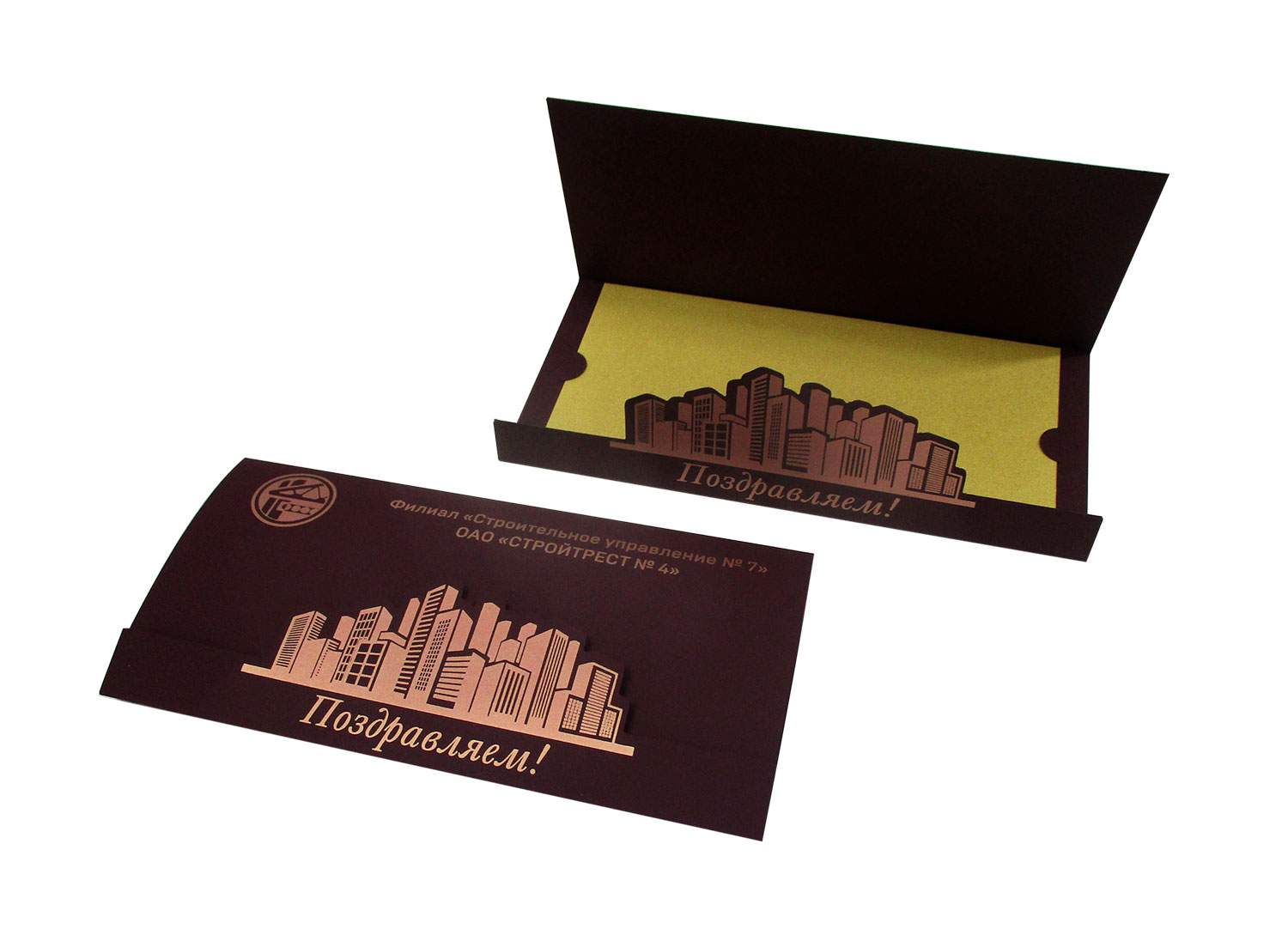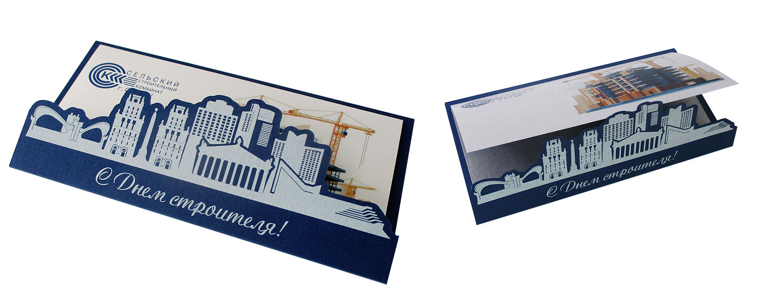 Открытка ко Дню строителя. Лазерная резка, шелкография.